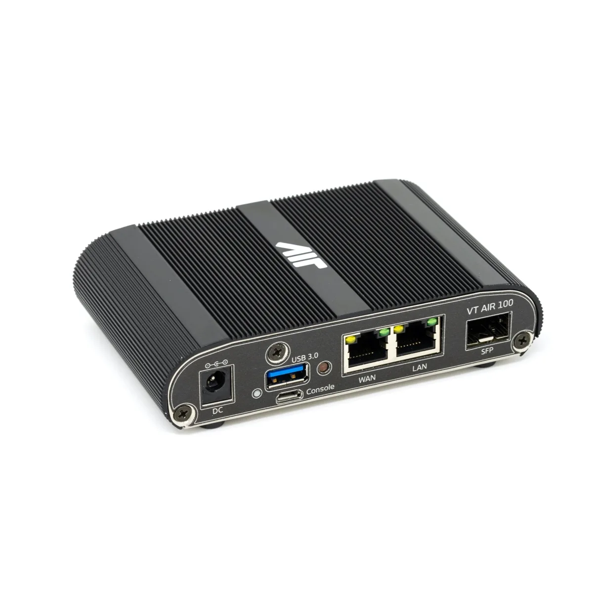 El VT AIR 100 es un producto de tecnología alemana especialmente desarrollado para un entorno de oficina exigente y sus requisitos. El cortafuegos empresarial VT AIR 100 es versátil gracias a su moderna tecnología (RJ45, SFP). Es un cortafuegos compacto, flexible y funcional que, gracias a su sofisticada tecnología, crece siempre con los requisitos de tu empresa.