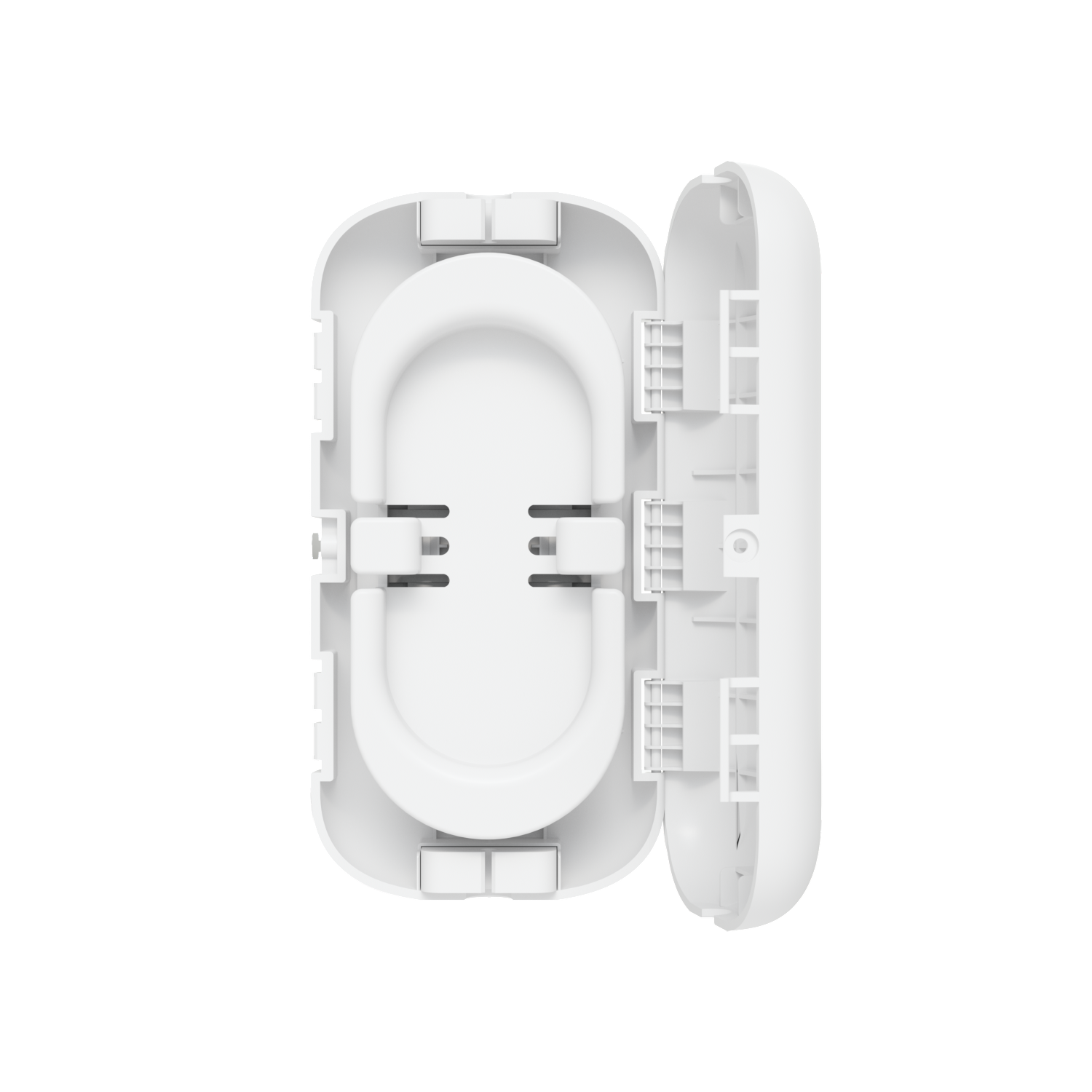 Устойчивый к ультрафиолетовому излучению, монтируемый на столб или стену корпус со съемной катушкой для организации и снижения физической нагрузки на волоконно-оптические кабели.